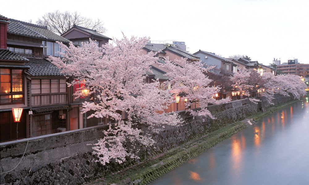 トップページ > 町並みアーカイブ> 金沢市主計町 伝建地区詳細 金沢市主計町Kanazawa-shi Kazue-machi 主計町は、茶屋町としての形成時期は明確でないが、明治期には成立していたもとの考えられている。 一階に出格子を構え、二階の建ちが高い茶屋建築の町並みが残り、明治後期から昭和初期にかけて三階建てに増築されるなど時代相をよく伝え、前を流れる浅野川と共に良好な景観を形成している。平成11年には全国で初めて旧町名が復活した町でもある。 Area : 石川県 Type : 茶屋町 伝建台帳 自治体公式HP 地図で見る町並み変遷 現在 昭和30(1955)年 明治42(1909)年 地図